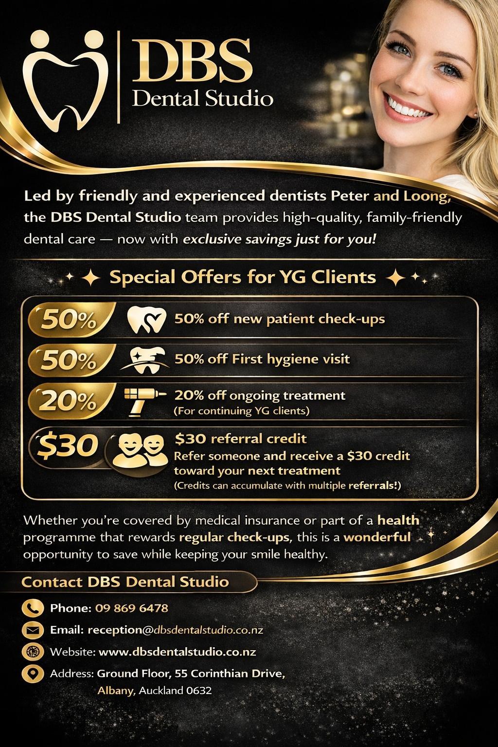 Whether you're covered by medical insurance or part of a health programme that rewards regular check-ups, this is a wonderful opportunity to save while keeping your smile healthy.